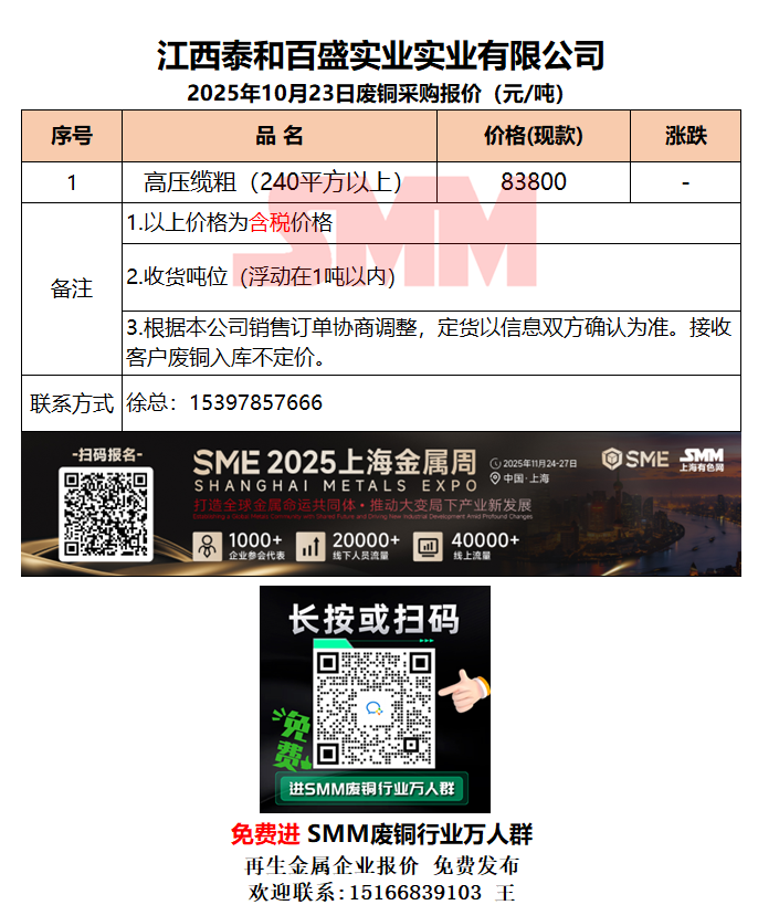 今日江西泰和 废铜采购报价已更新,有货的朋友欢迎联系我们!