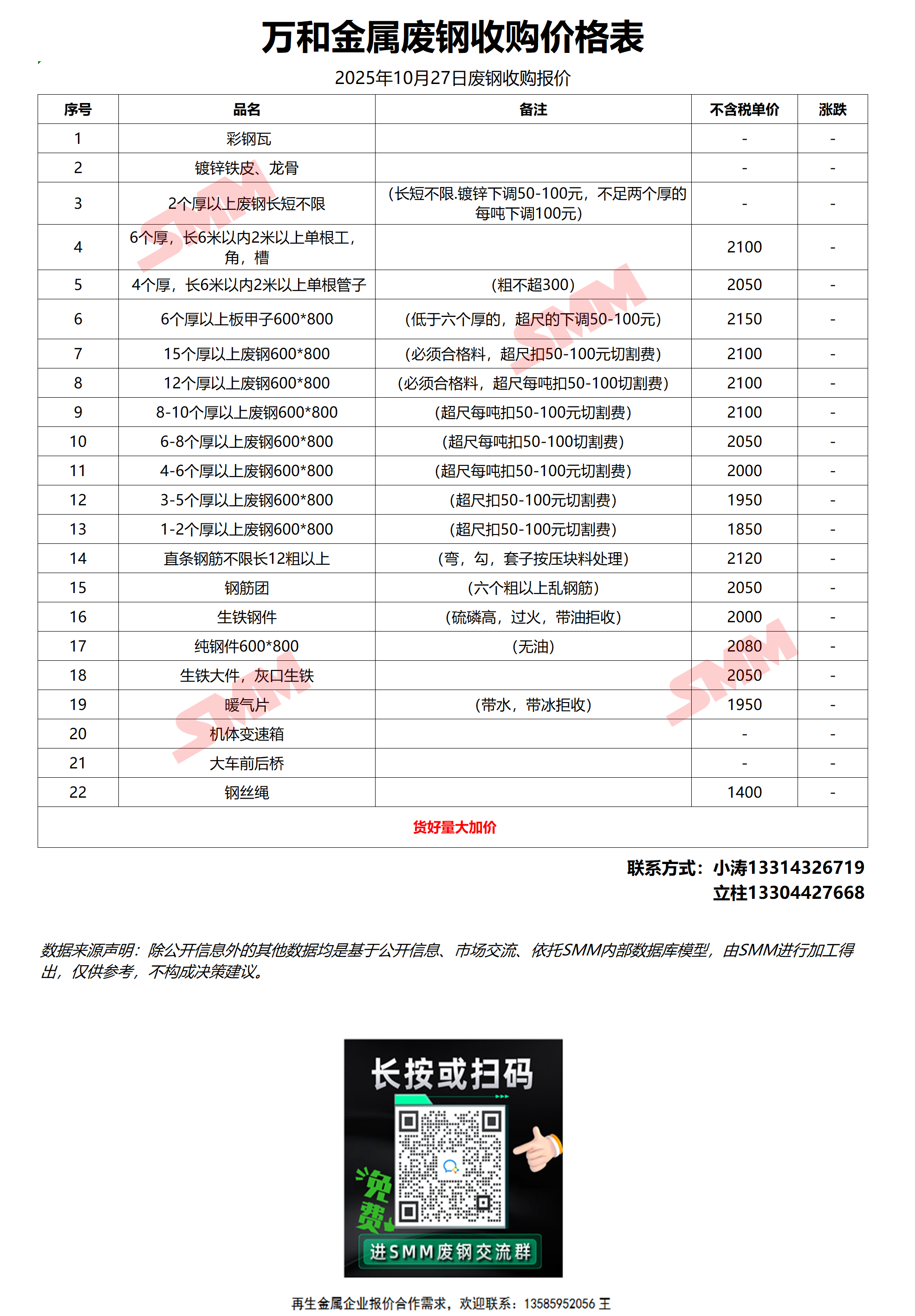10月27日万和金属 废钢收购报价