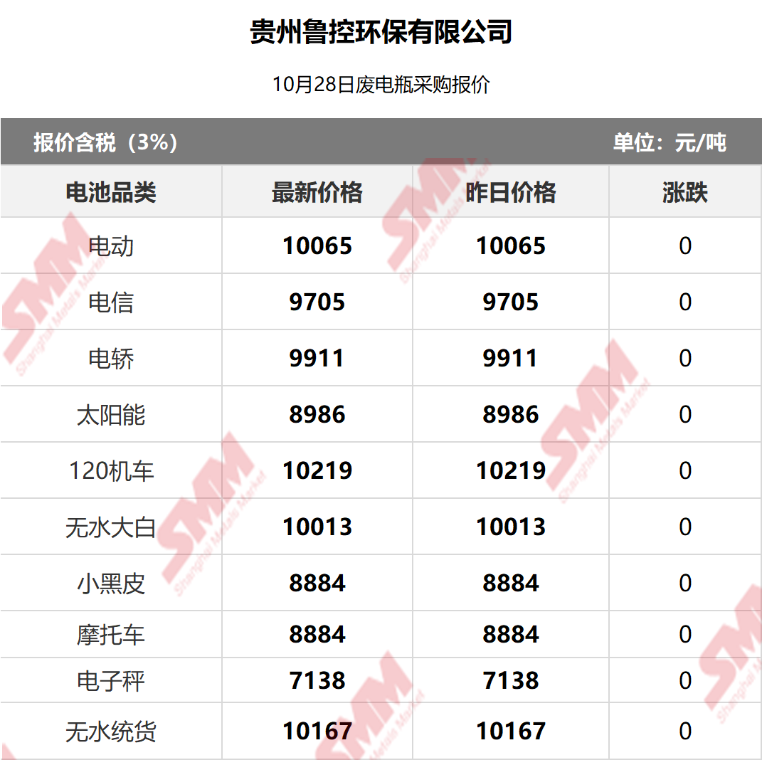 SMM 2025/10/28 国内知名再生铅企业废电瓶采购报价