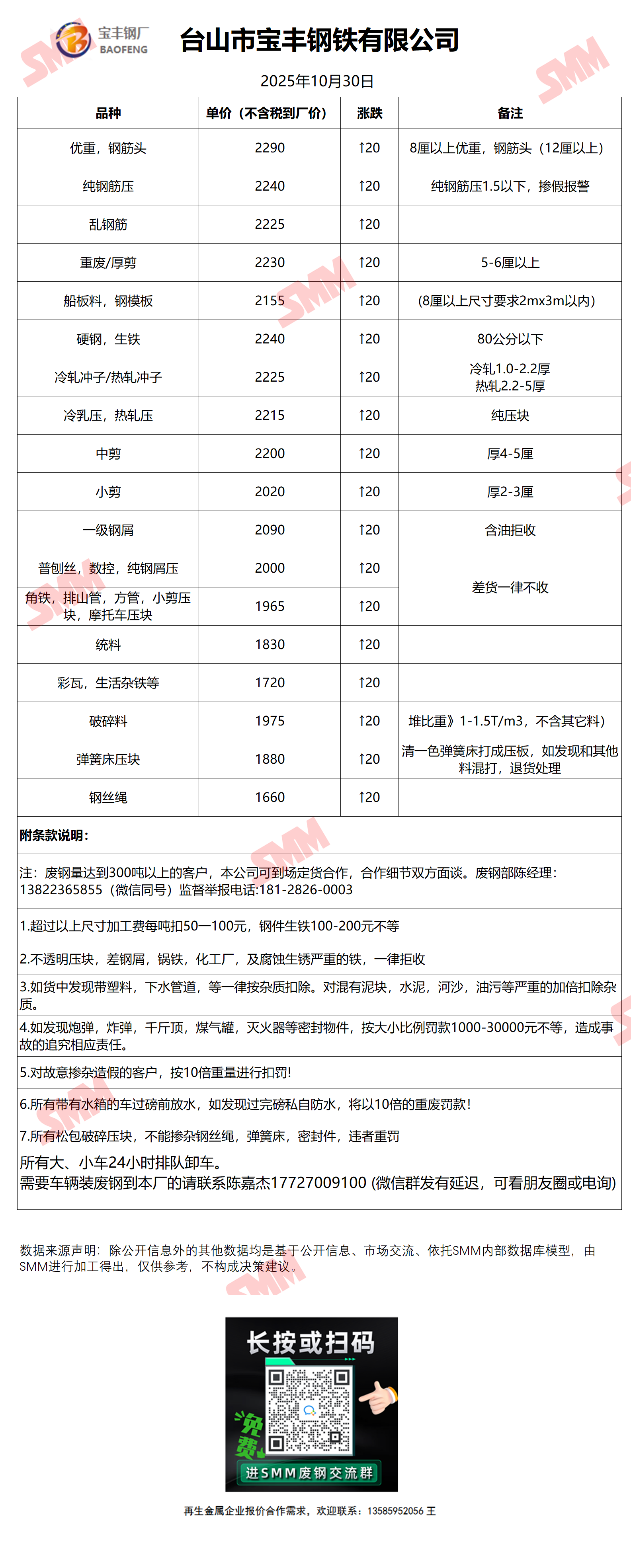 今日宝丰钢铁 废钢收购报价已更新,有货的朋友欢迎联系我们!