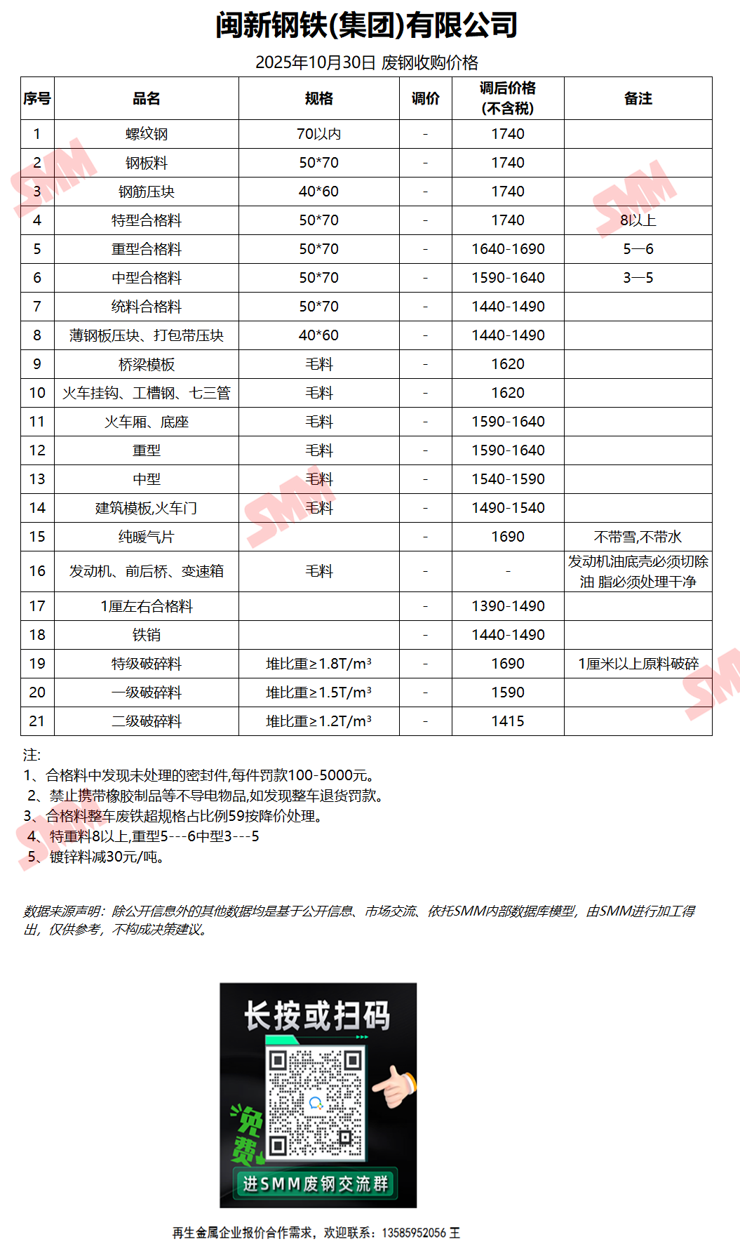 今日闽新钢铁 废钢收购报价已更新,有货的朋友欢迎联系我们!