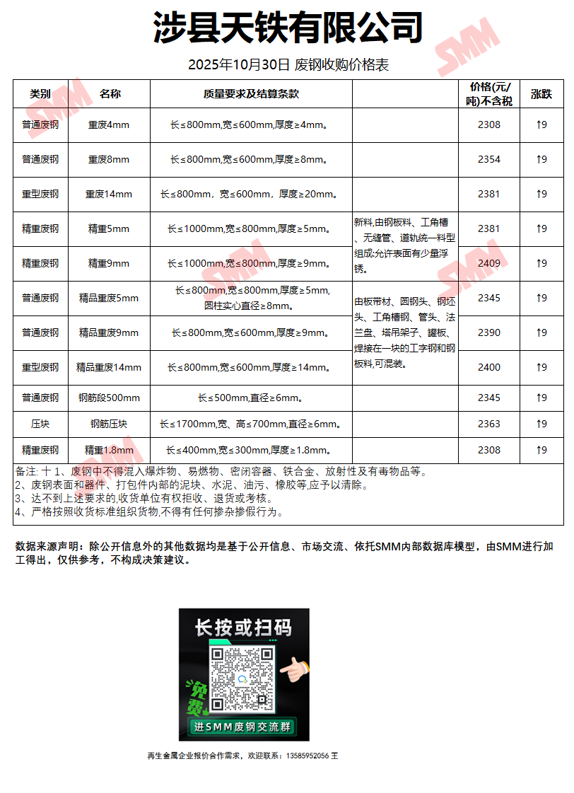 10月31日河北金瑞隆钢铁 废钢收购报价