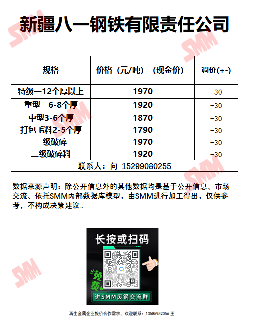 今日新疆八一钢铁 废钢收购报价已更新,有货的朋友欢迎联系我们!