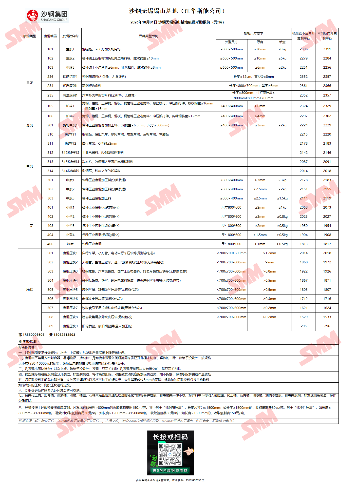 今日沙钢锡山基地 废钢采购报价已更新,有货的朋友欢迎联系我们!