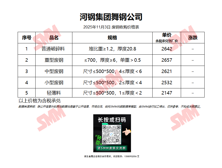 今日河钢集团舞钢公司 废钢收购报价已更新,有货的朋友欢迎联系我们!