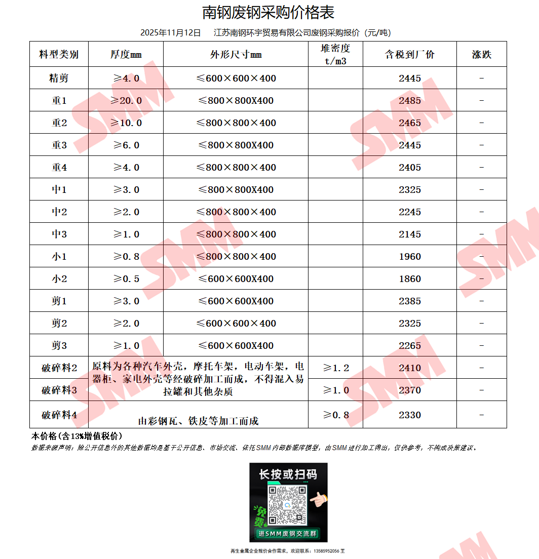 今日南京钢铁 废钢采购报价已更新,有货的朋友欢迎联系我们!