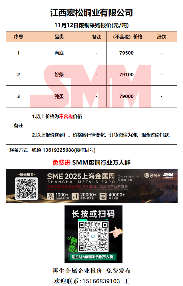 11月12日江西宏松 废铜采购报价