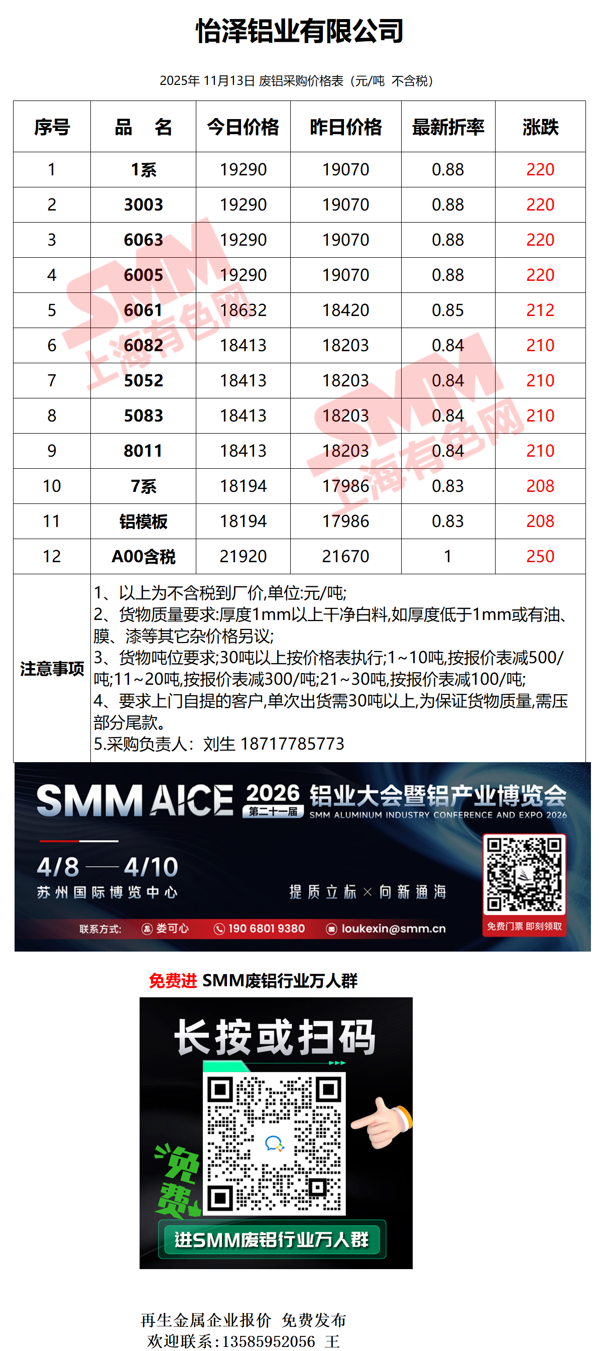 11月13日怡泽铝业 废铝采购报价