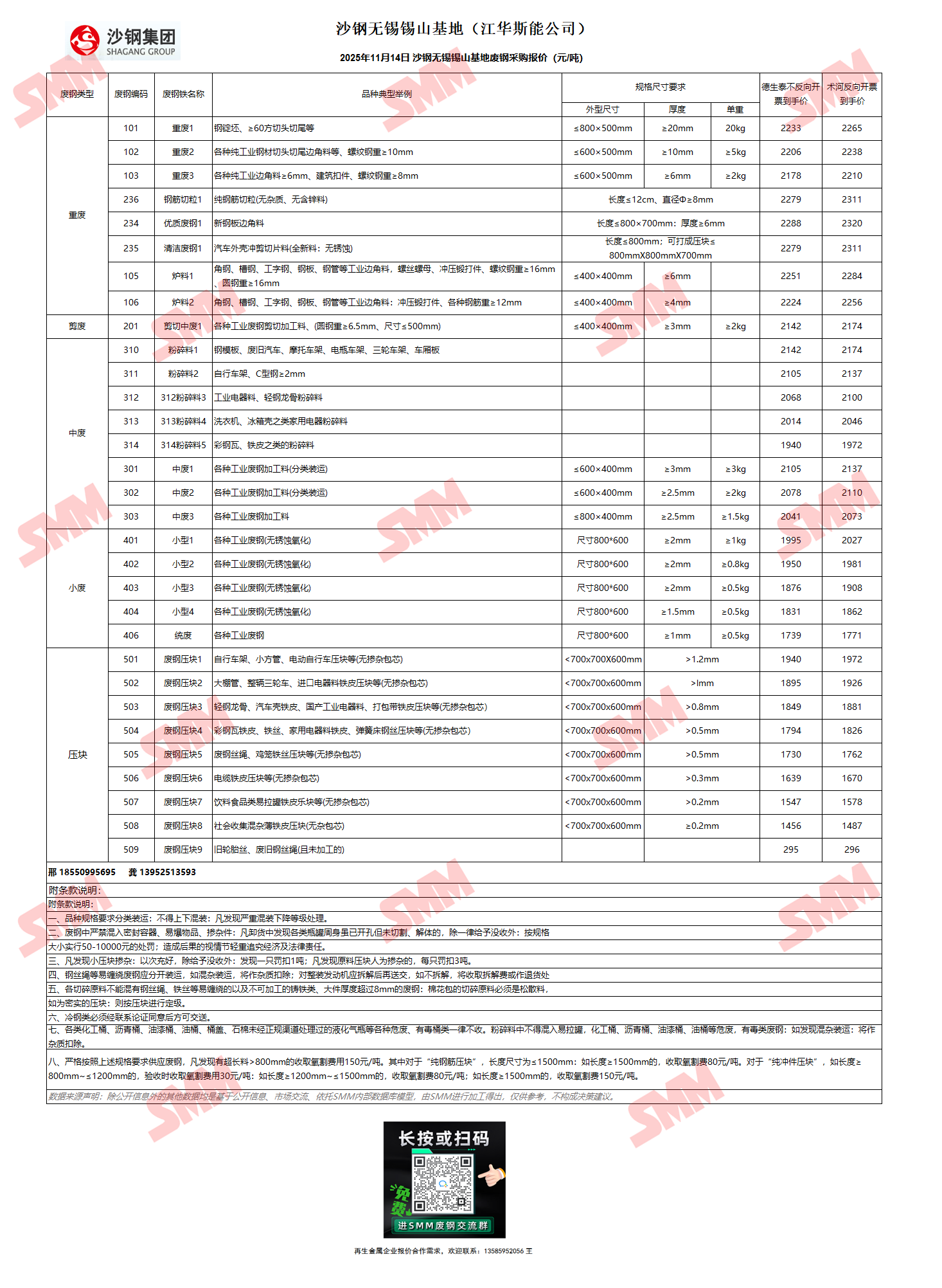 今日沙钢锡山基地 废钢采购报价已更新,有货的朋友欢迎联系我们!