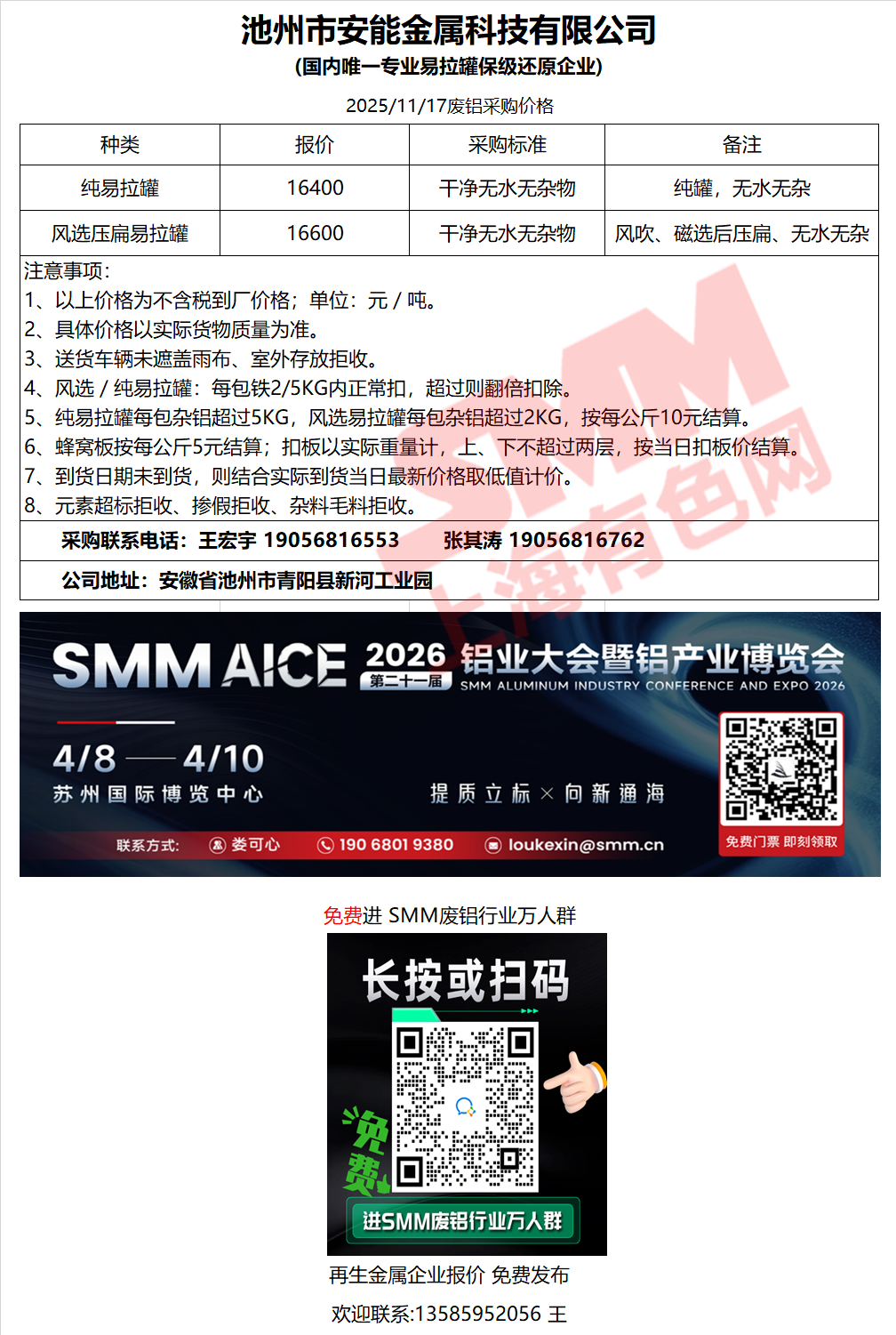 今日安能金属 废铝采购报价已更新,有货的朋友欢迎联系我们!