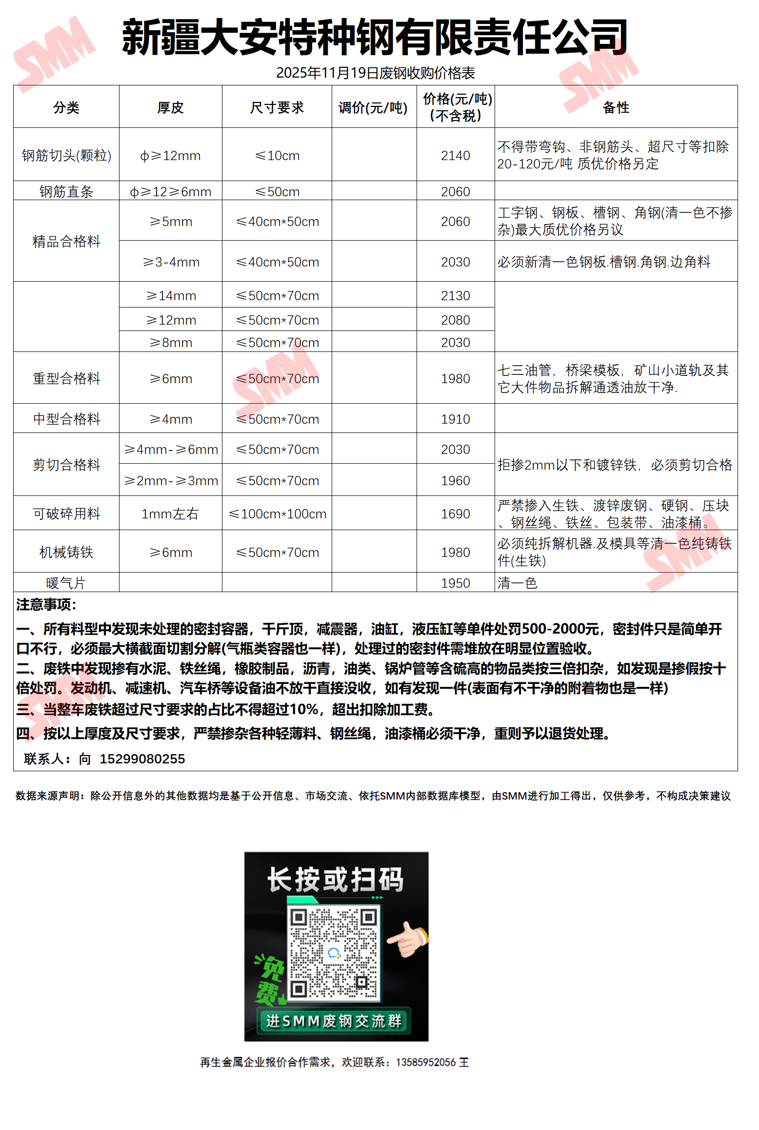 11月19日新疆大安钢铁 废钢收购报价