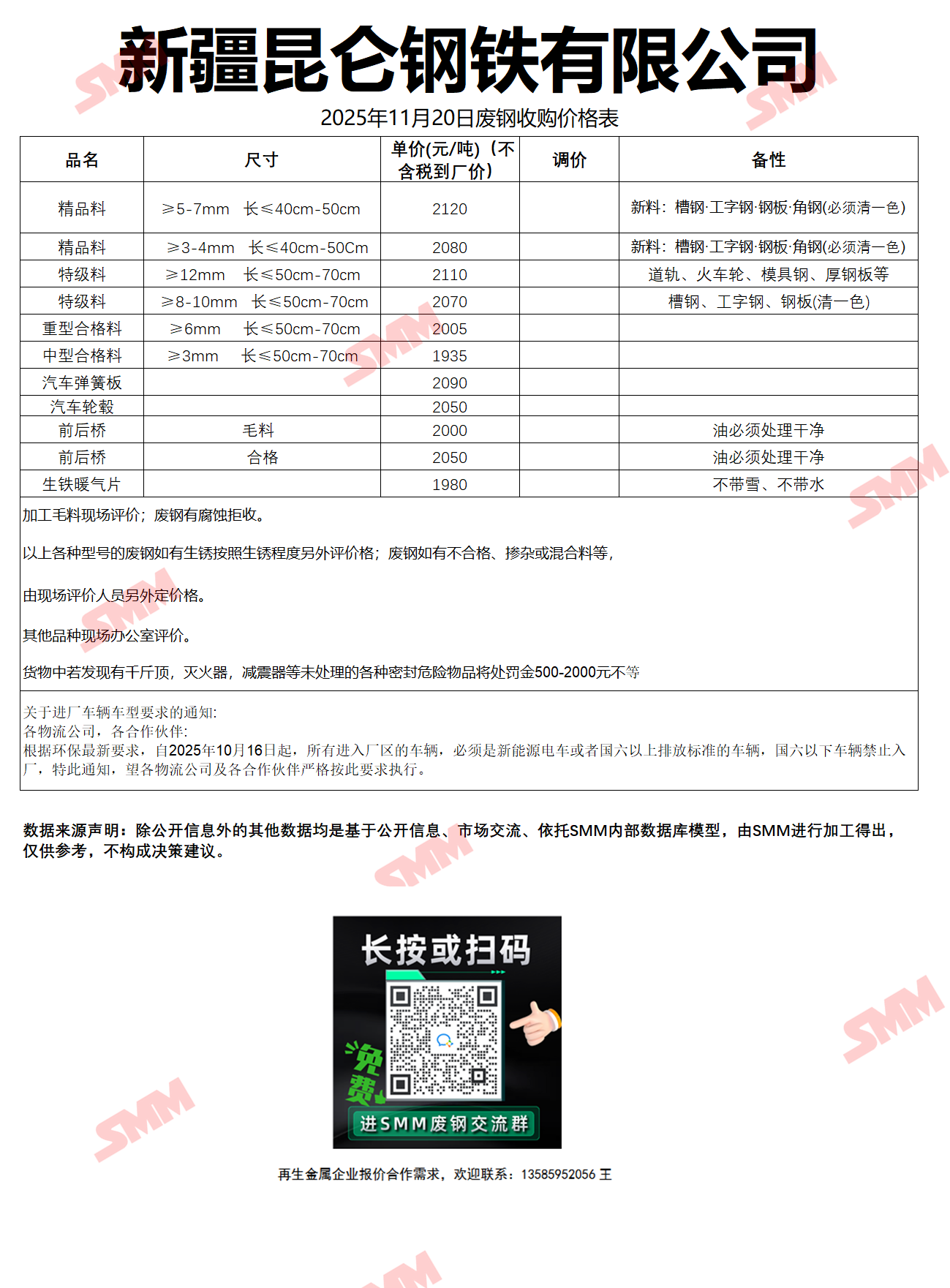 今日新疆昆仑钢铁 废钢收购报价已更新,有货的朋友欢迎联系我们!