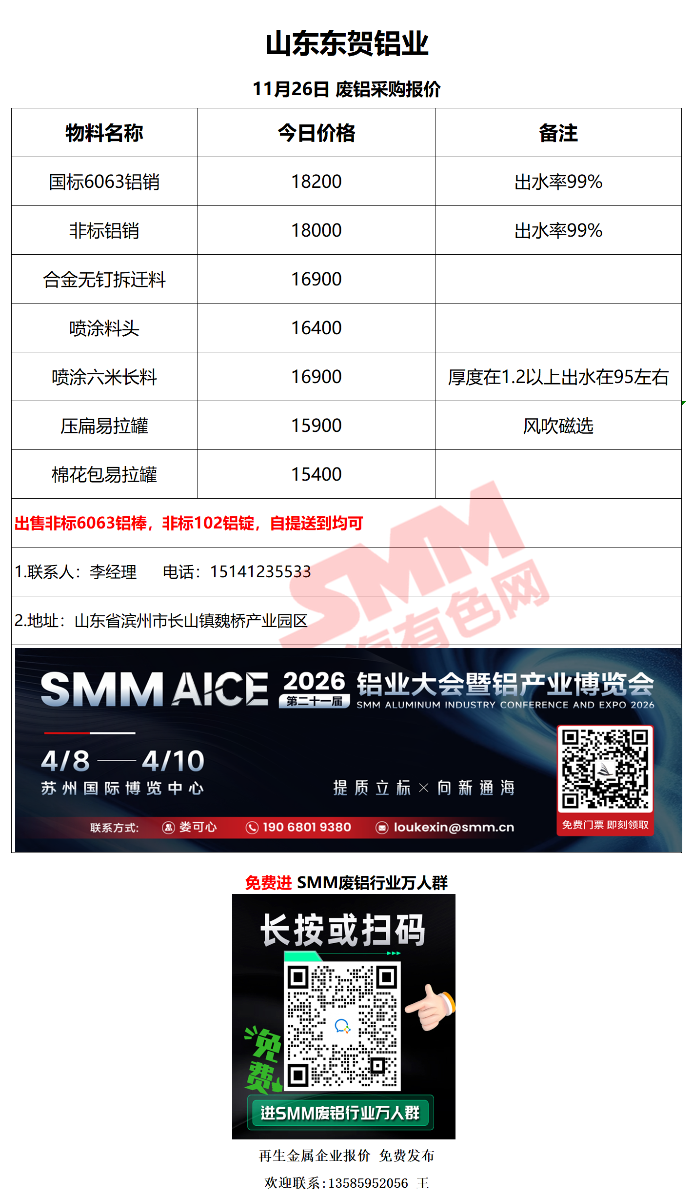 今日东贺铝业 废铝采购报价已更新,有货的朋友欢迎联系我们!