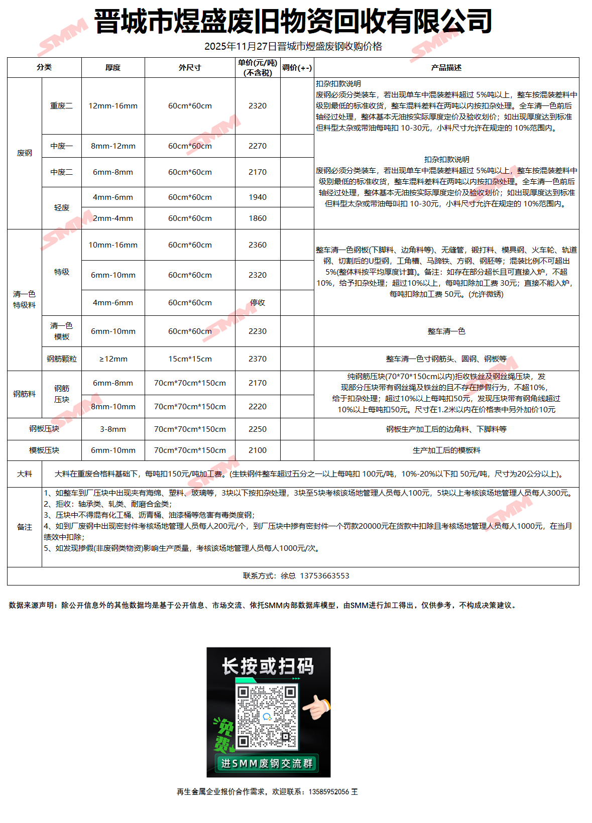 今日晋城市煜盛 废钢收购报价已更新,有货的朋友欢迎联系我们!