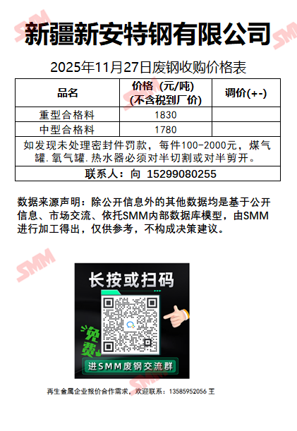 11月27日新安特钢 废钢收购报价