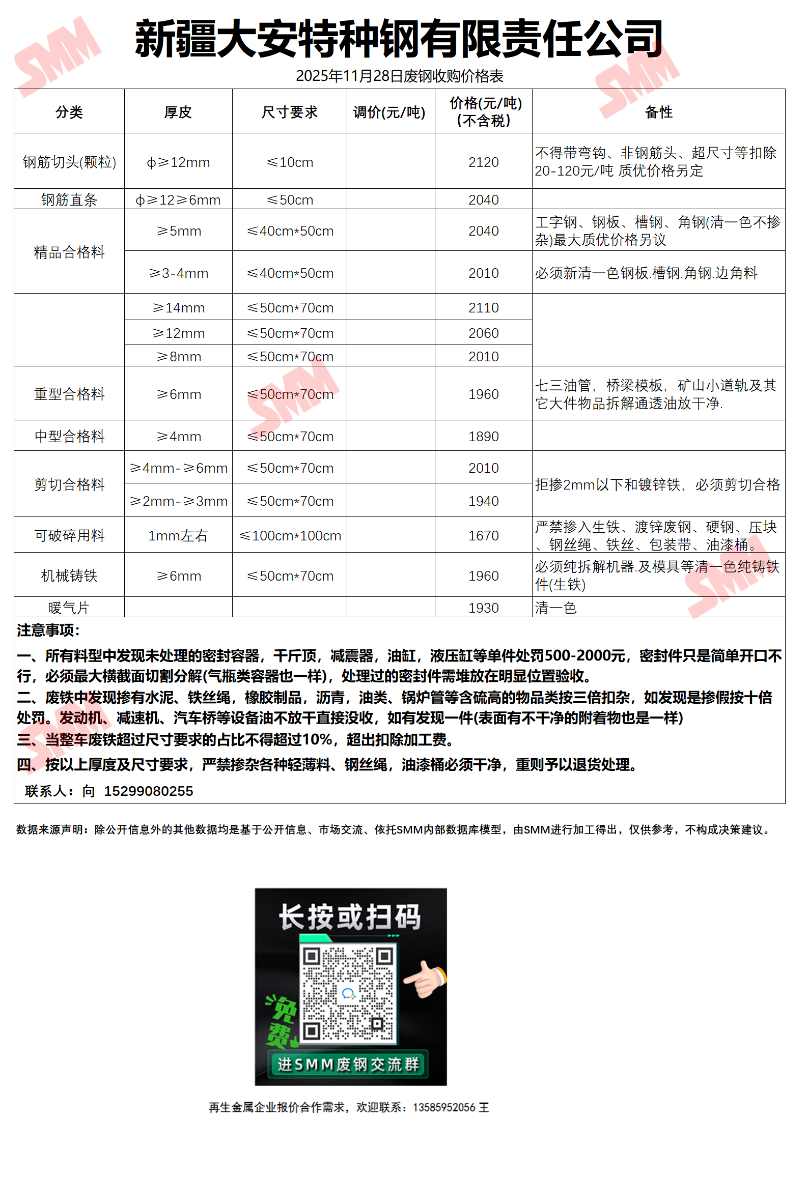 今日新疆大安钢铁 废钢收购报价已更新,有货的朋友欢迎联系我们!