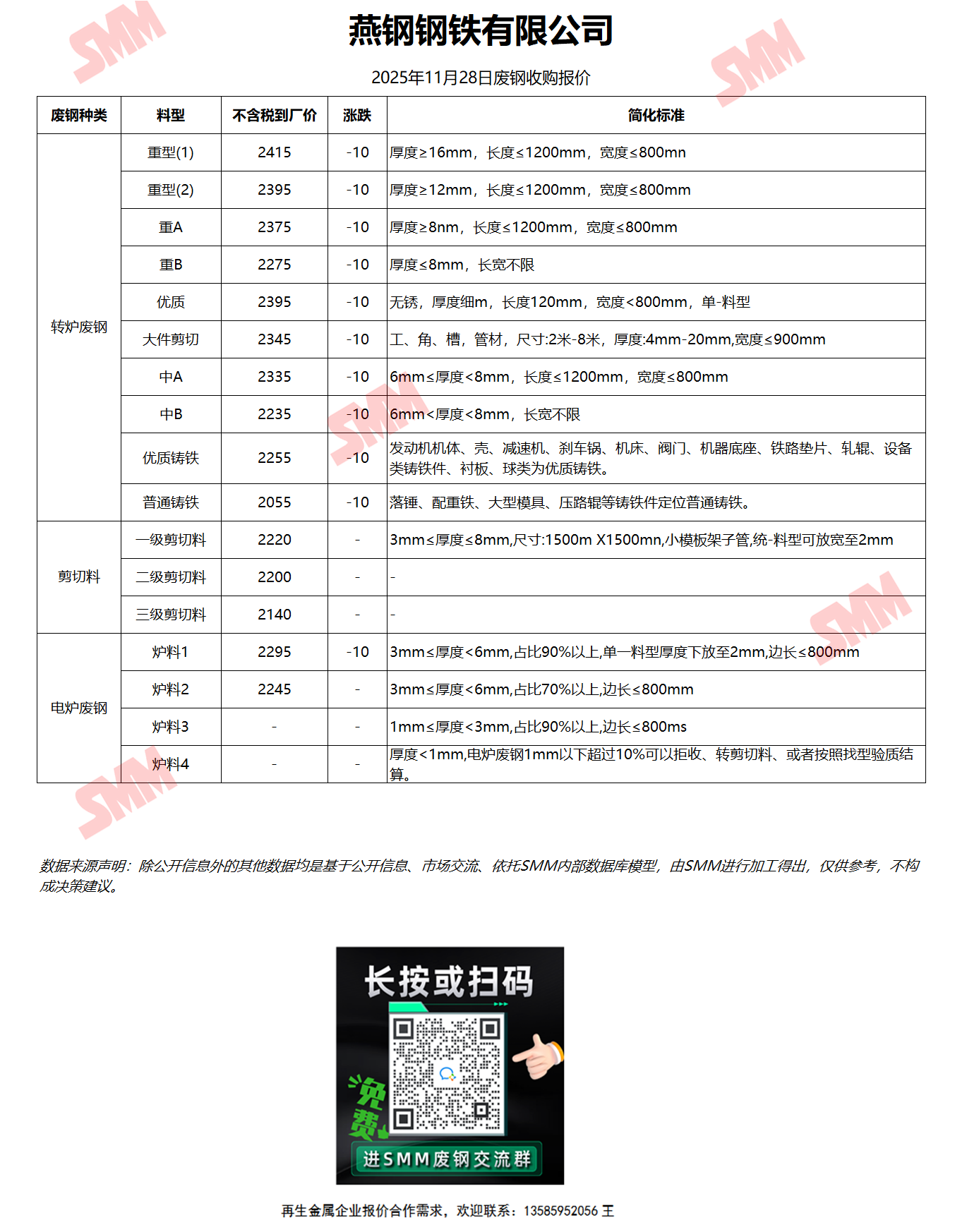 11月28日14时30分 燕钢钢铁 废钢收购报价