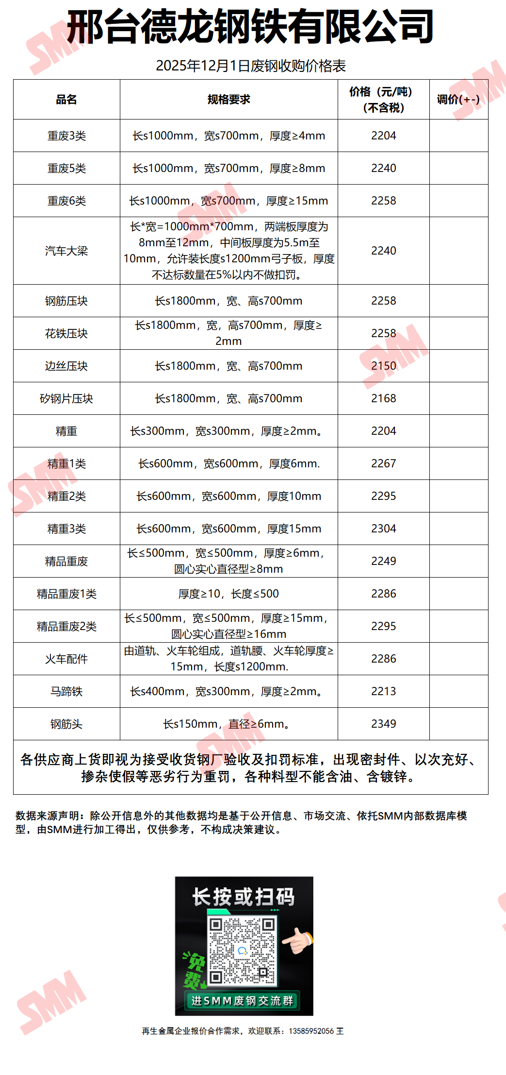 今日邢台德龙钢铁 废钢收购报价已更新,有货的朋友欢迎联系我们!