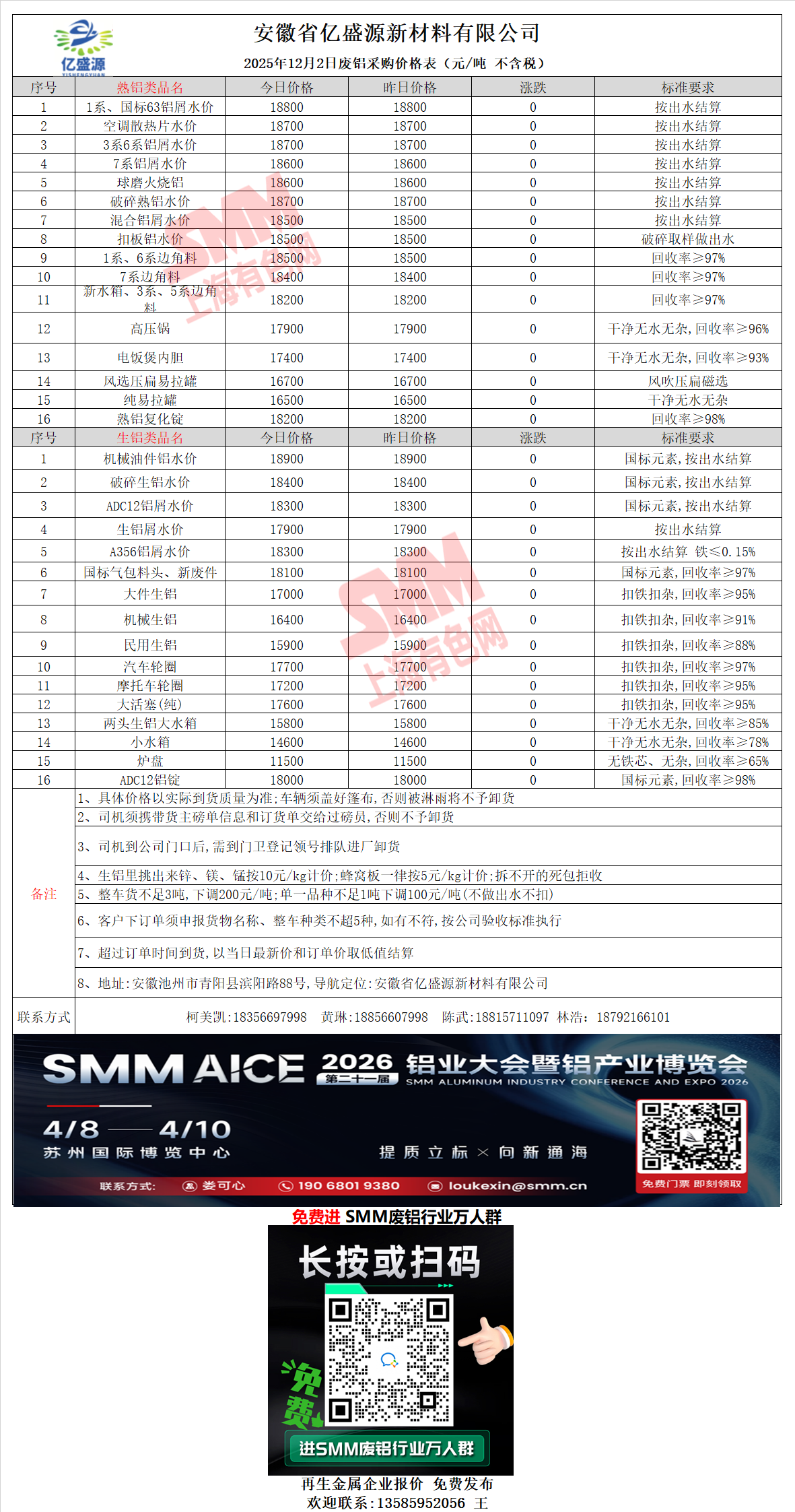 12月2日安徽亿盛源 废铝采购报价