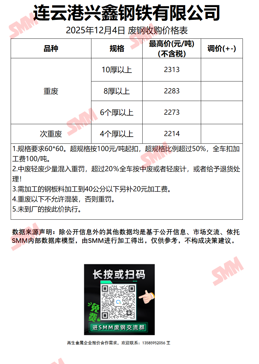 今日连云港兴鑫 废钢收购报价已更新,有货的朋友欢迎联系我们!