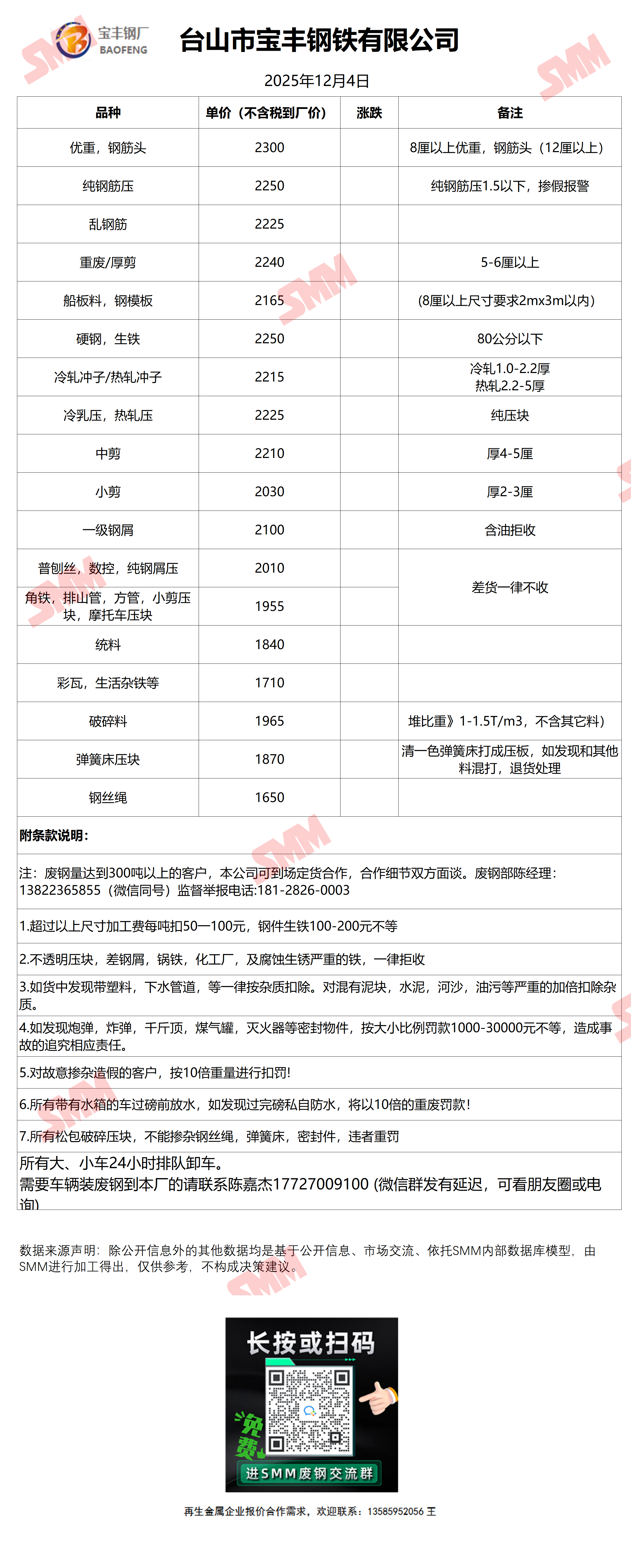 12月4日宝丰钢铁 废钢收购报价
