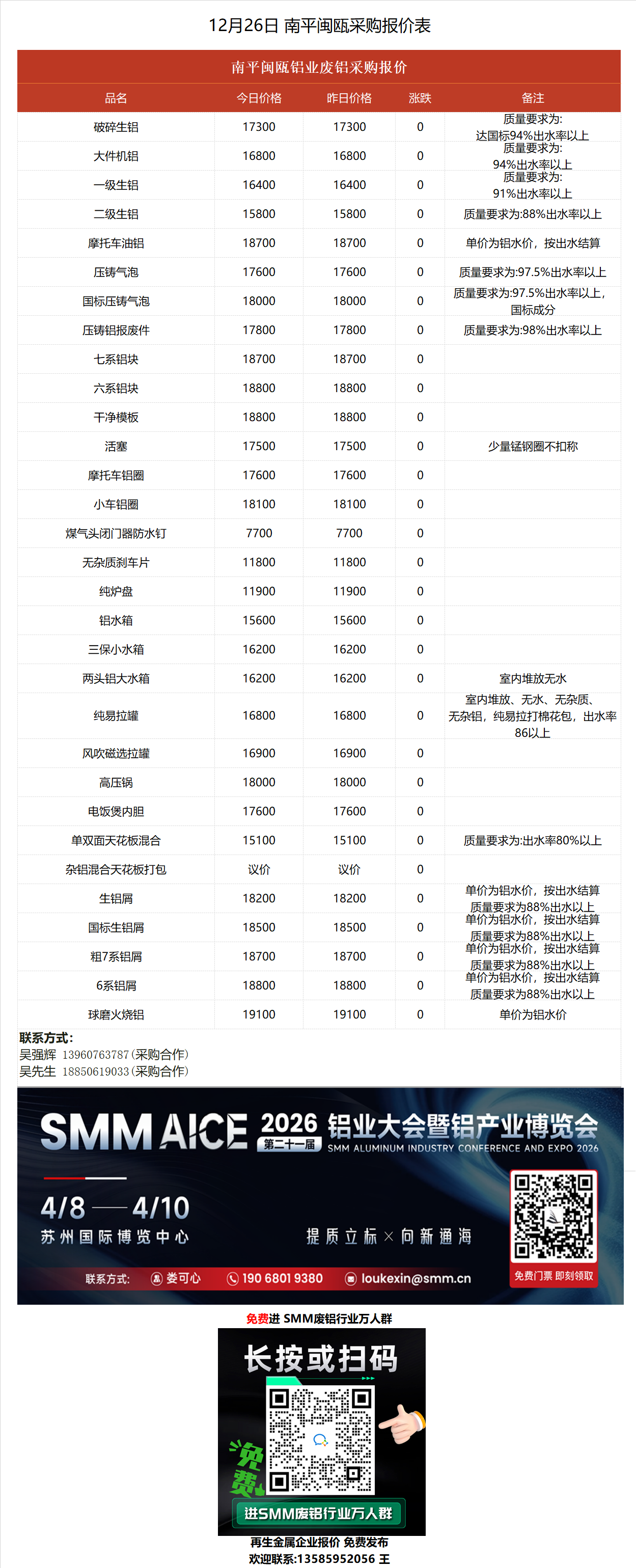 今日南平闽瓯 废铝采购报价已更新,有货的朋友欢迎联系我们!