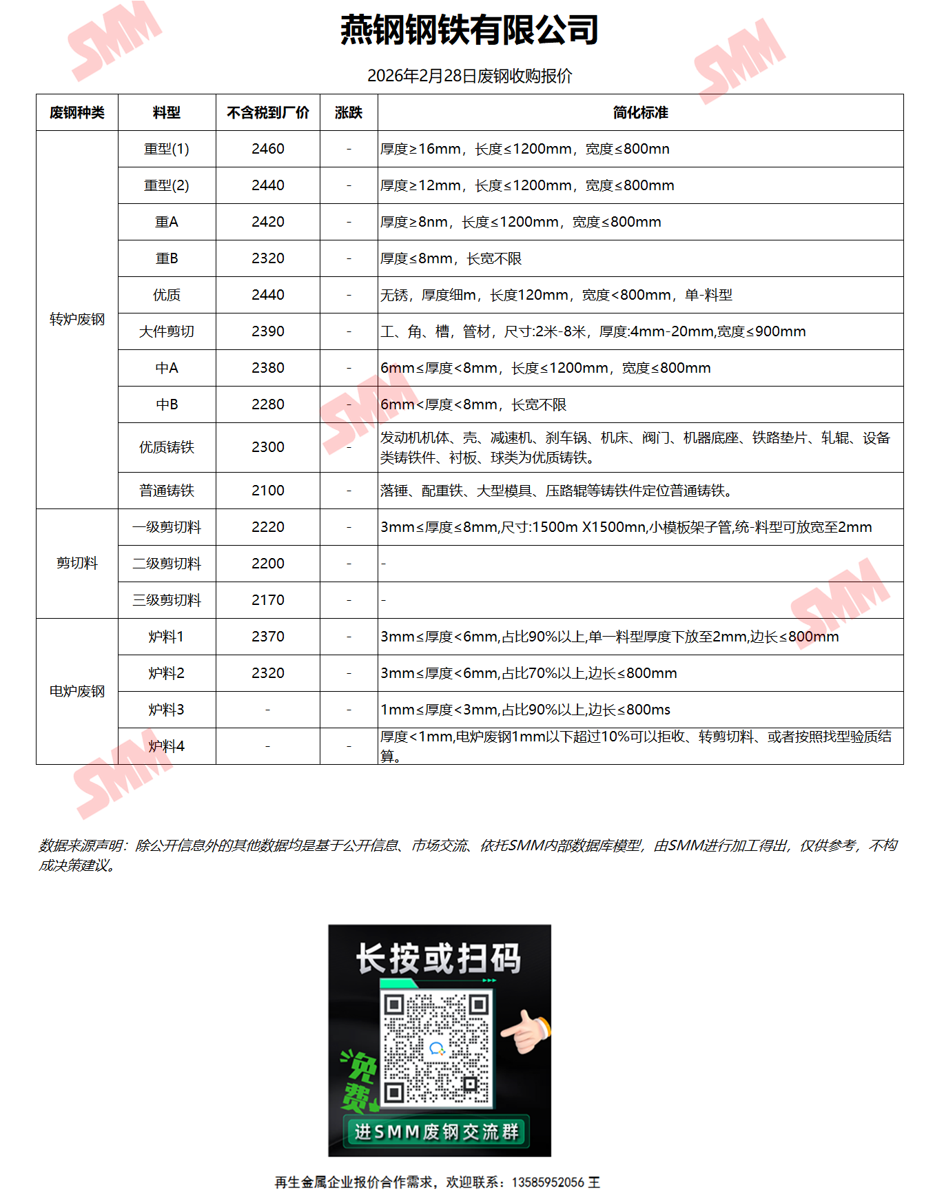 2月28日燕钢钢铁 废钢收购报价