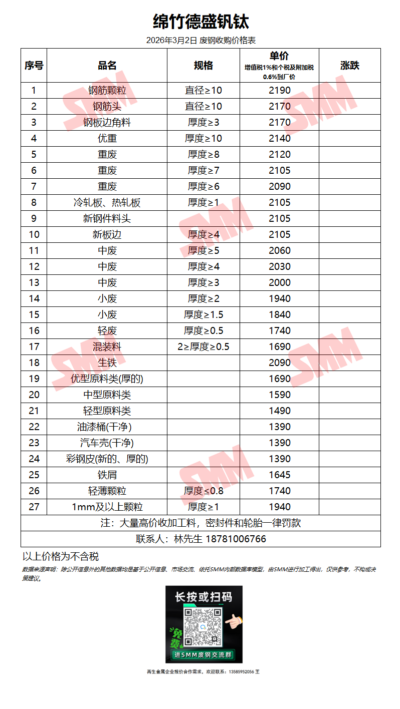 3月2日绵竹德盛钒钛 废钢收购报价