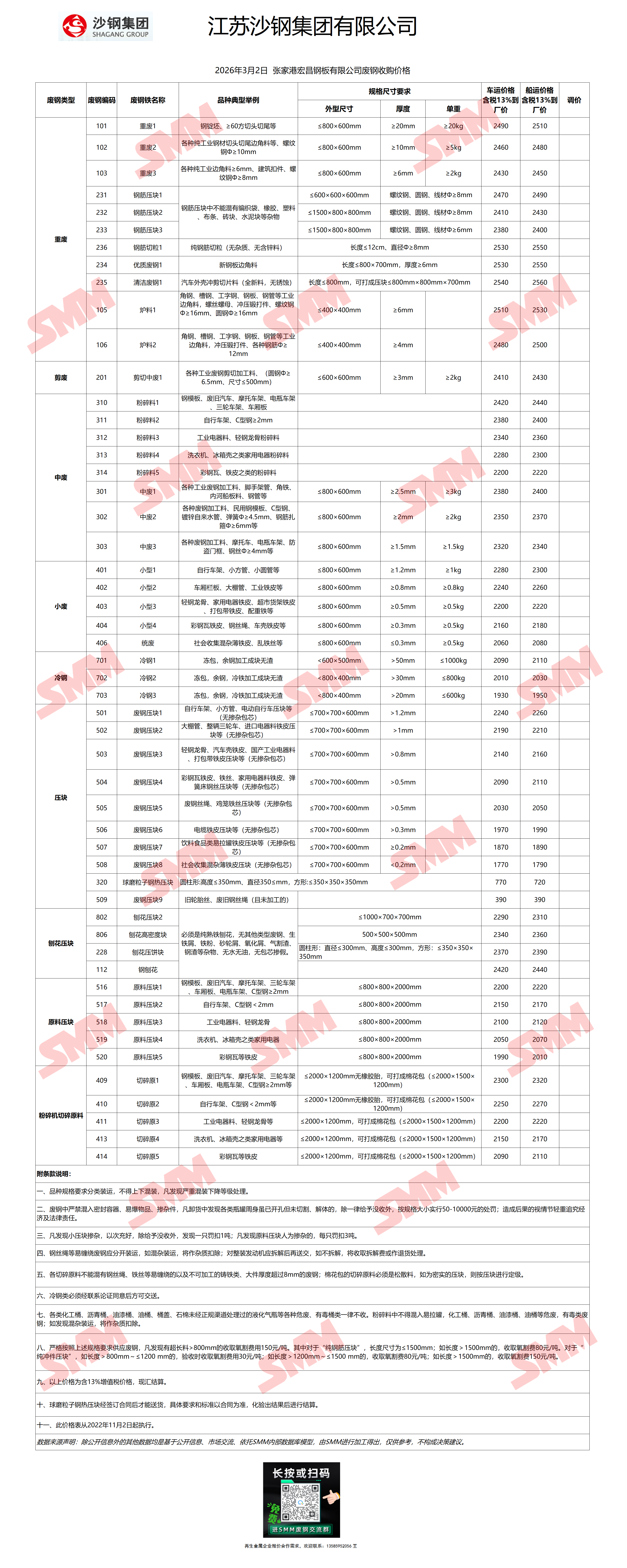 3月2日沙钢张家港基地 废钢收购报价