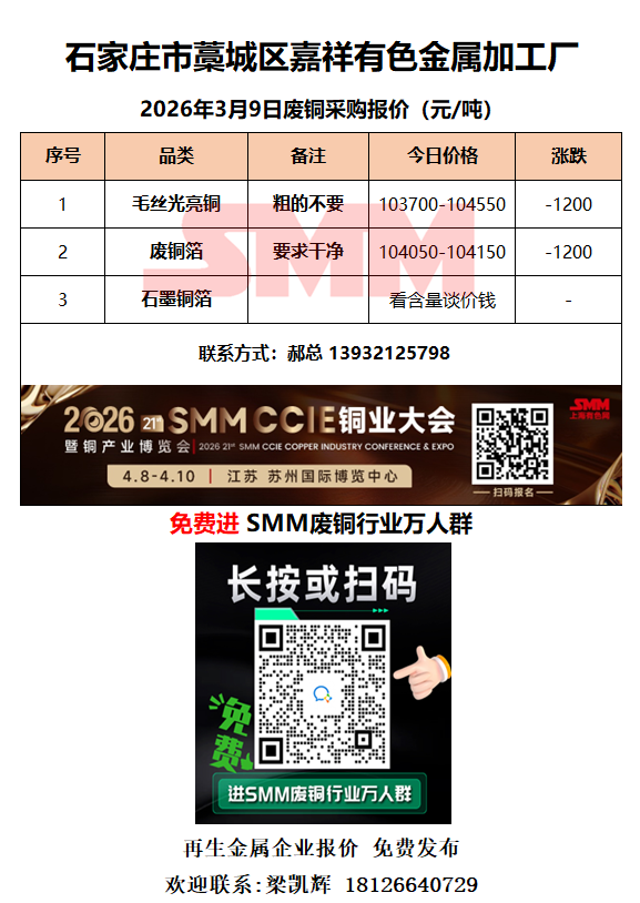 3月9日嘉祥有色金属 废铜采购报价