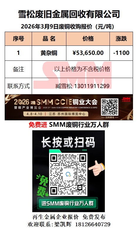 3月9日雪松废旧 废铜采购报价