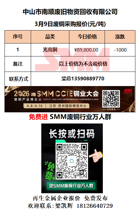 3月9日中山南顺 废铜采购报价
