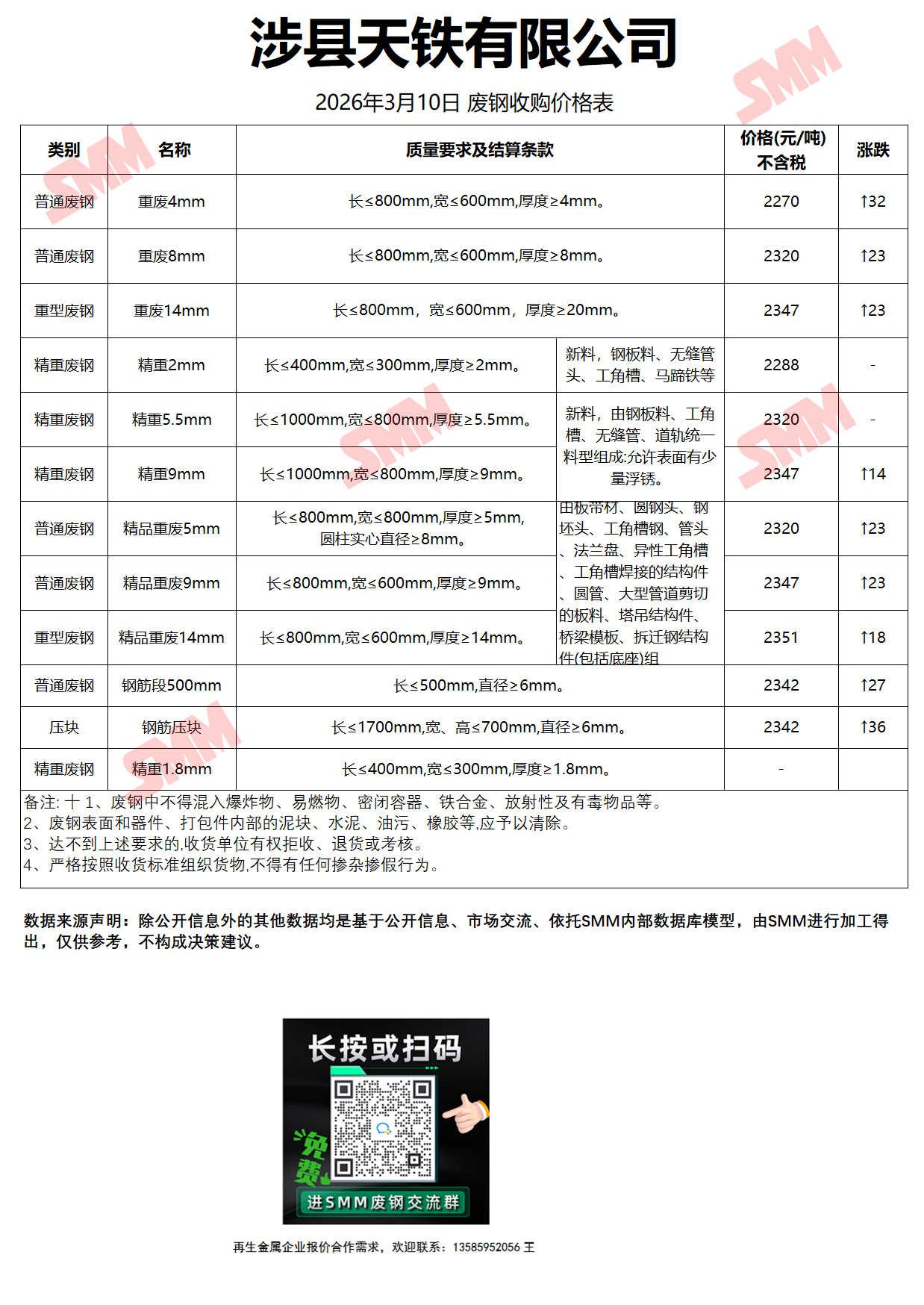 3月10日涉县天铁 废钢收购报价
