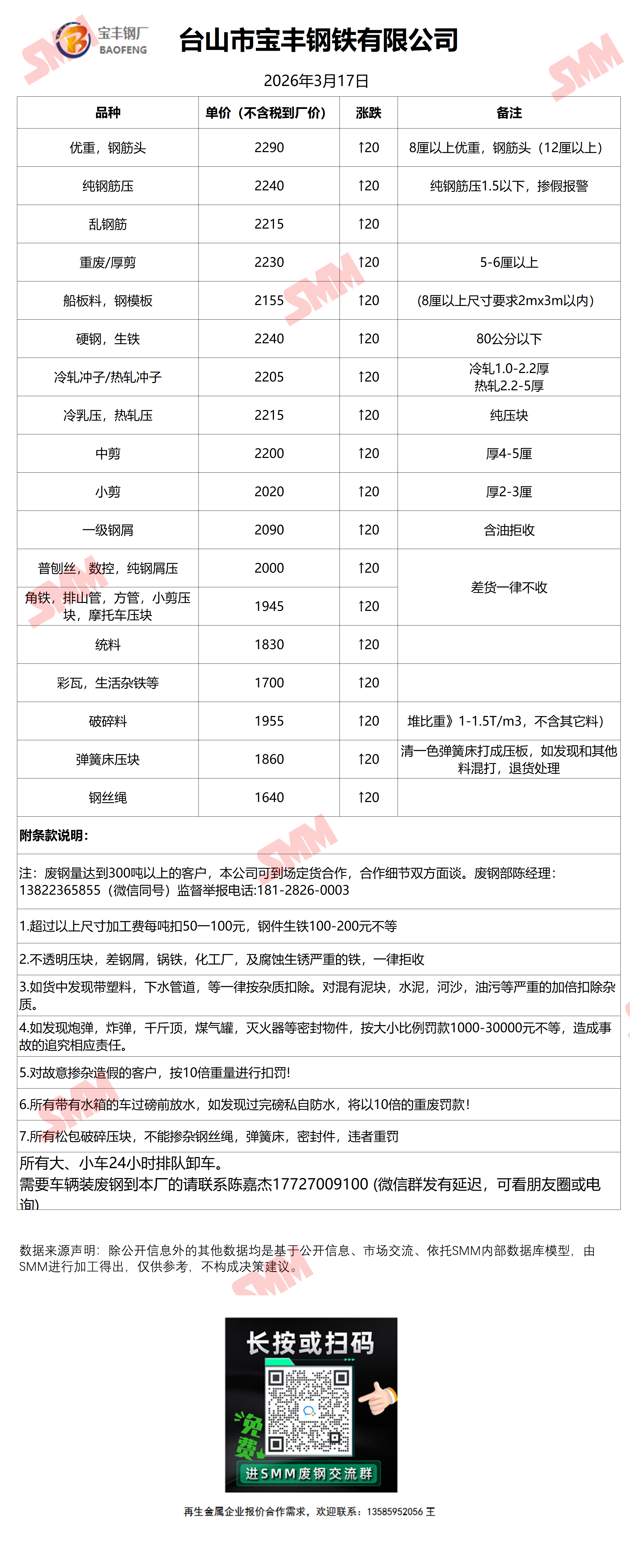3月20日宝丰钢铁 废钢收购报价