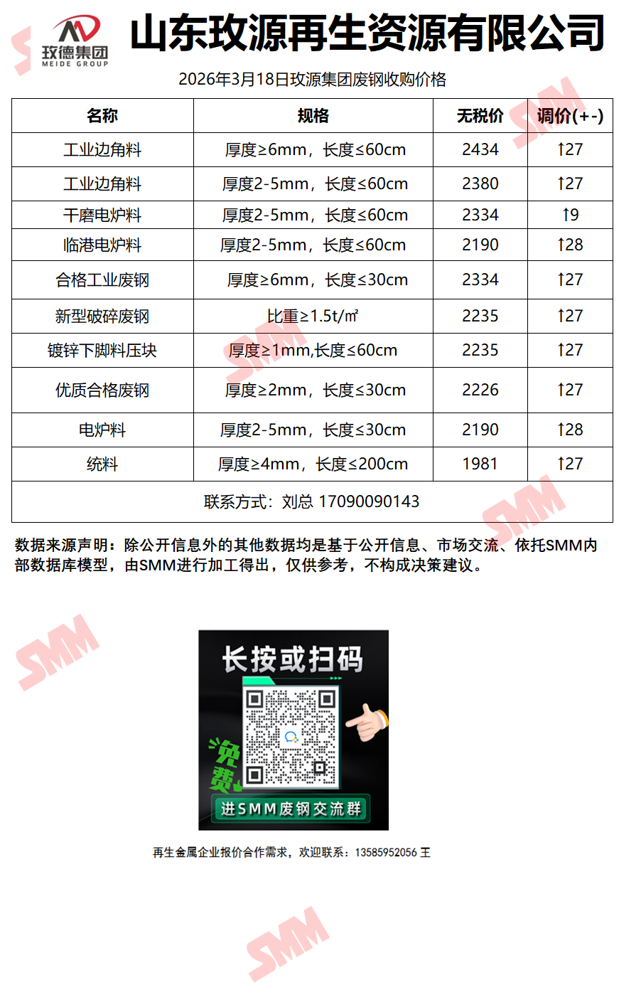 3月18日山东玫源再生 废钢收购报价