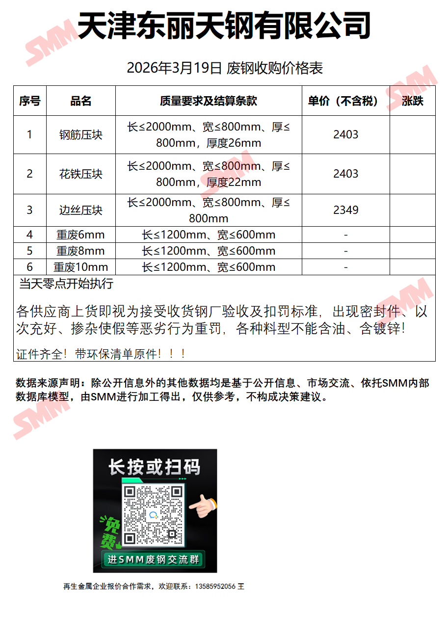 3月19日天津东丽天钢 废钢收购报价