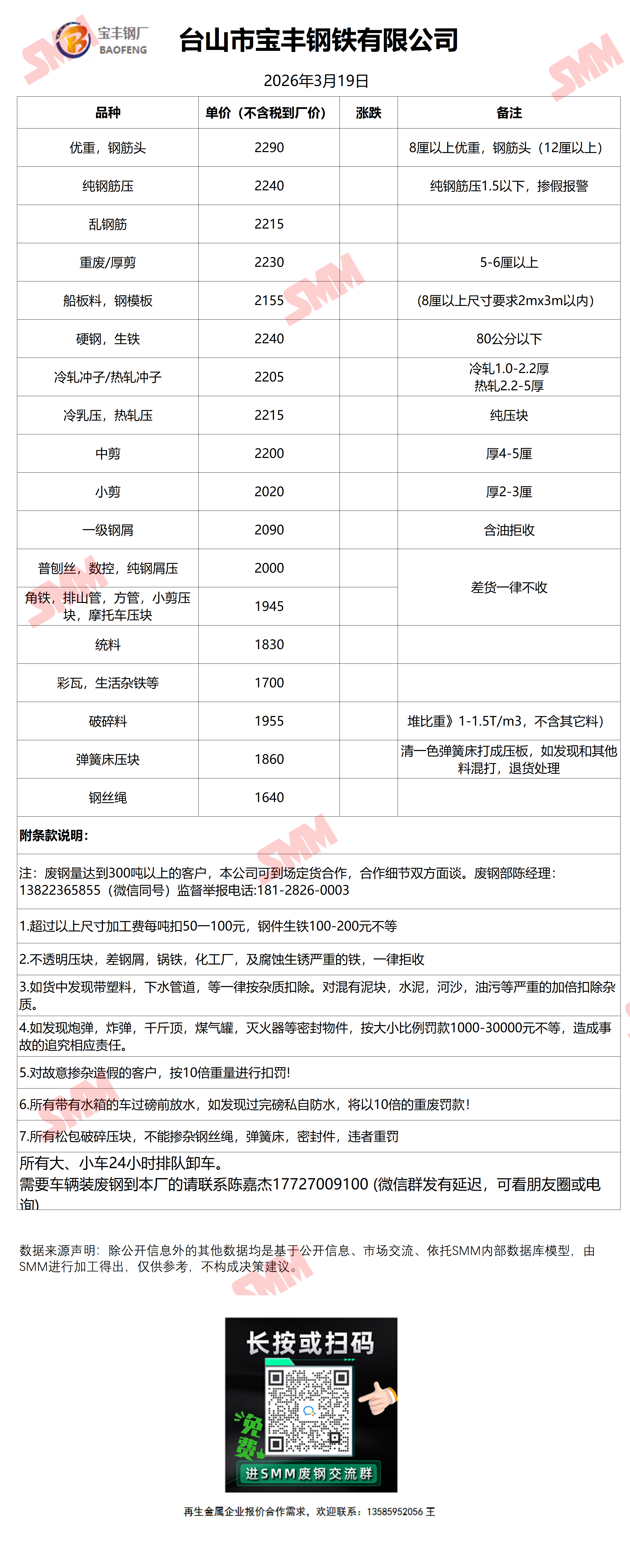 3月17日14时45分宝丰钢铁 废钢收购报价