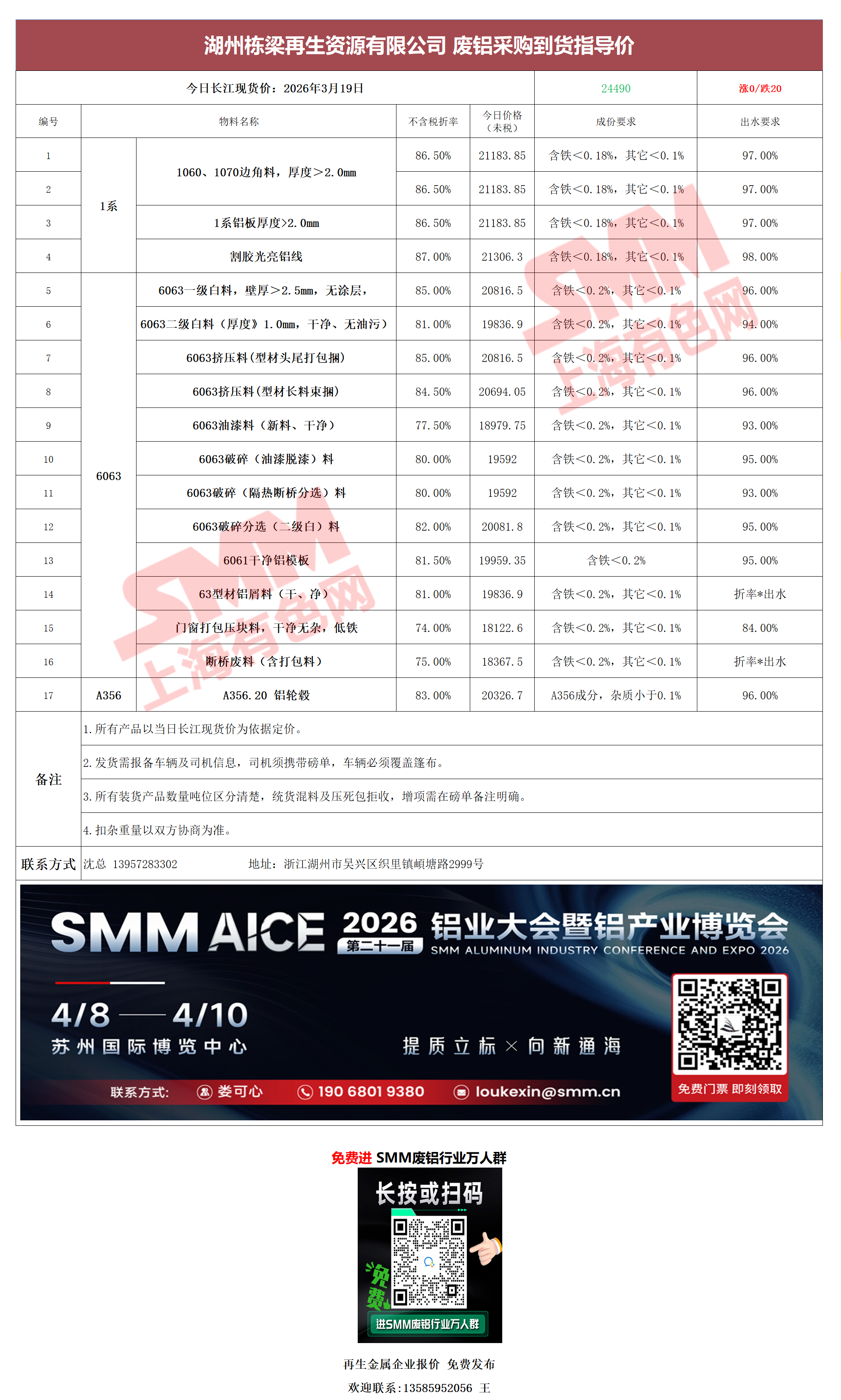 3月19日新格集团 废铝采购报价