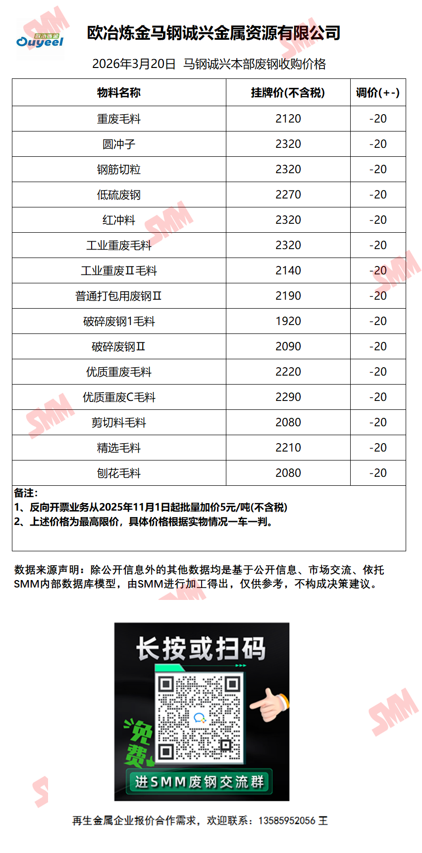 3月20日马钢诚兴 废钢收购报价