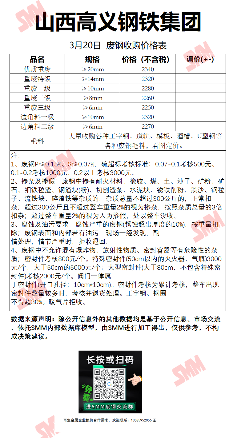 3月20日山西高义 废钢收购报价