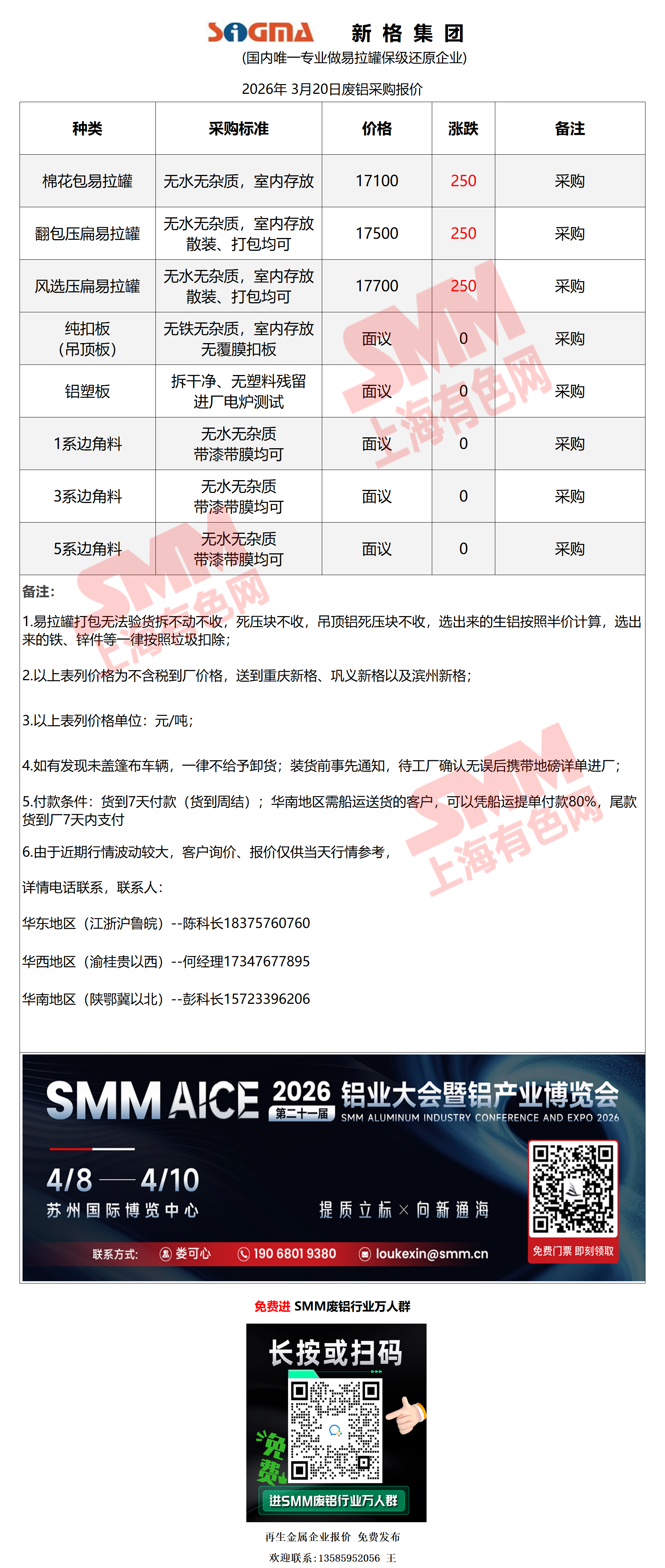 3月20日新格集团 废铝采购报价