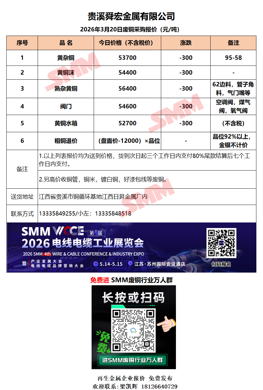 3月20日贵溪舜宏 废铜采购报价