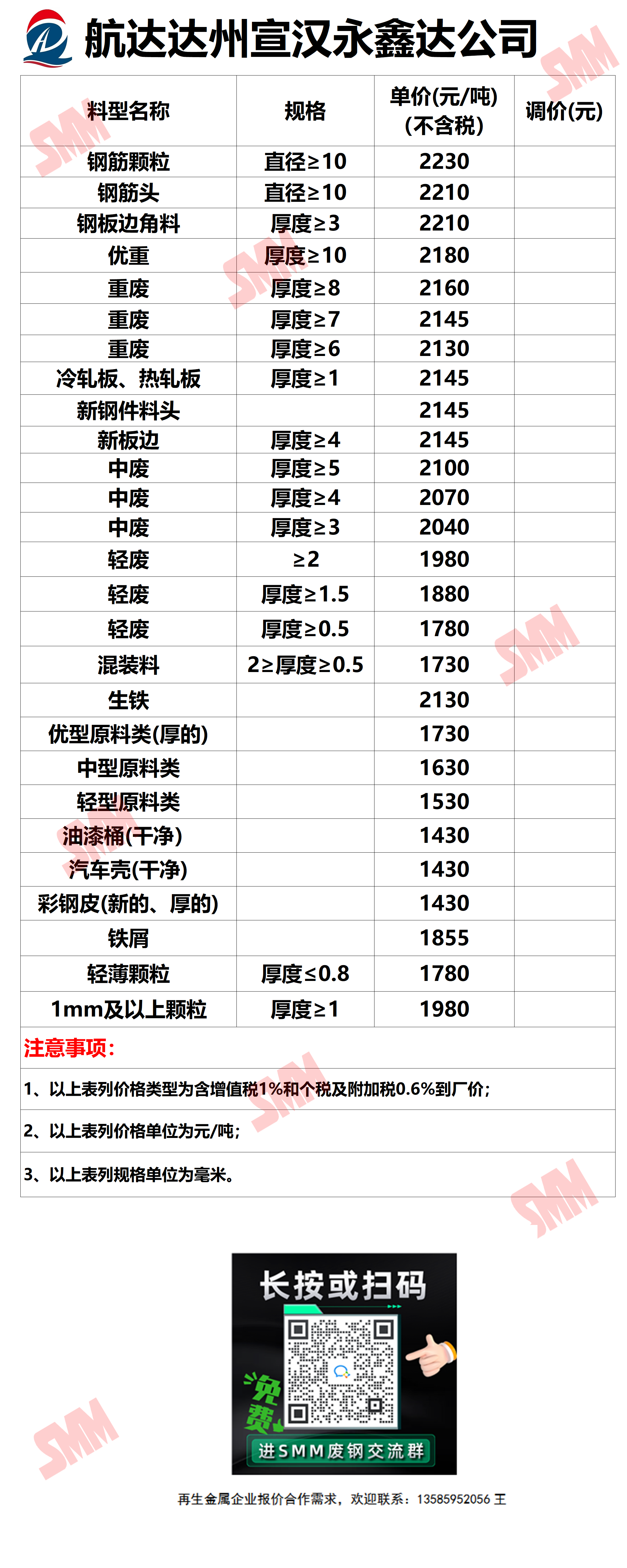 今日达州宣汉永鑫达 废钢收购报价已更新,有货的朋友欢迎联系我们!