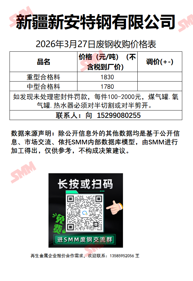 3月27日新安特钢 废钢收购报价