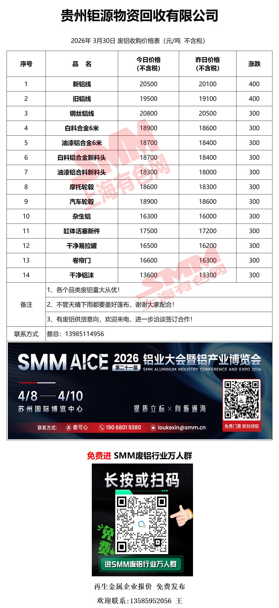 3月30日贵州钜源 废铝采购报价