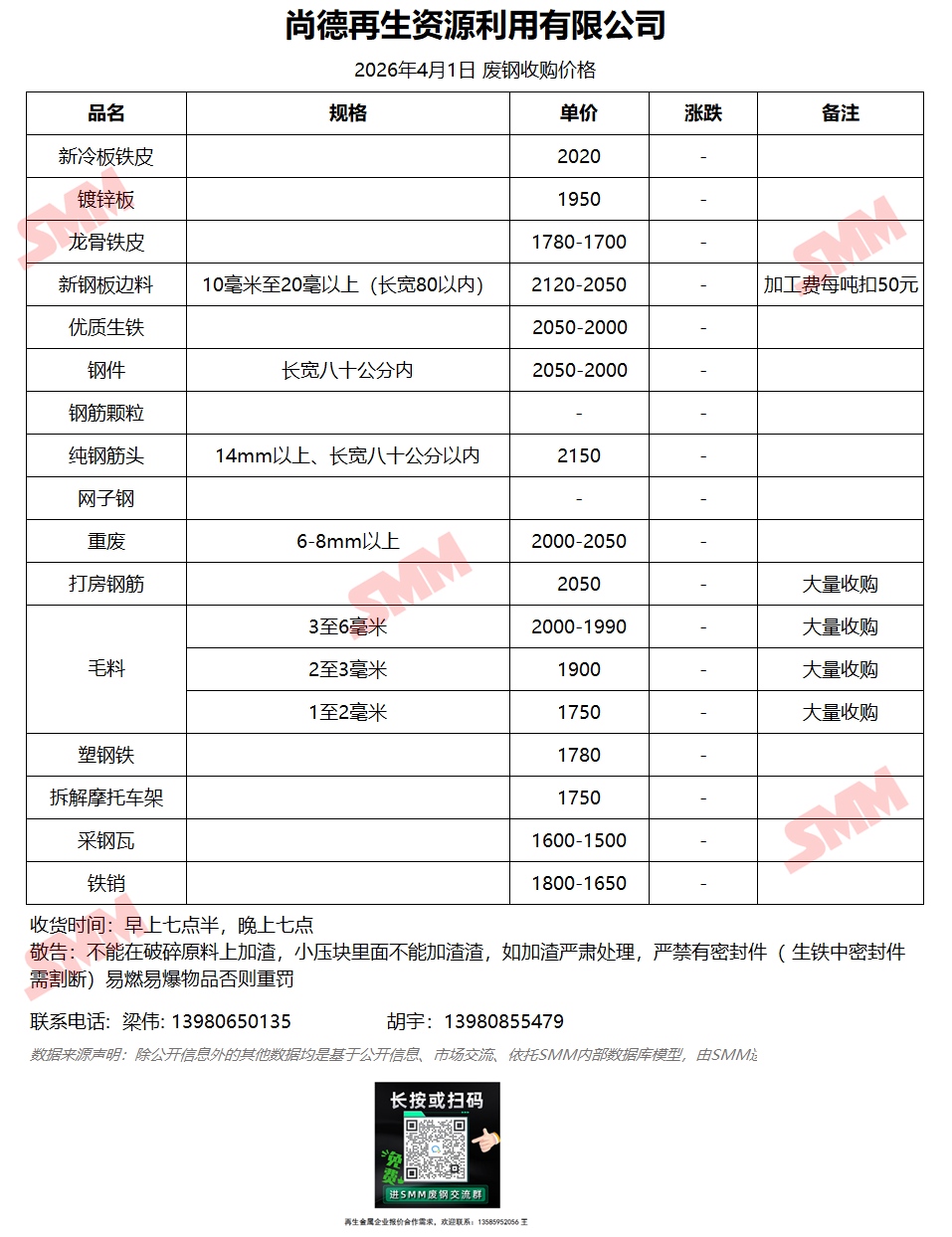 今日尚德再生资源 废钢收购报价已更新,有货的朋友欢迎联系我们!