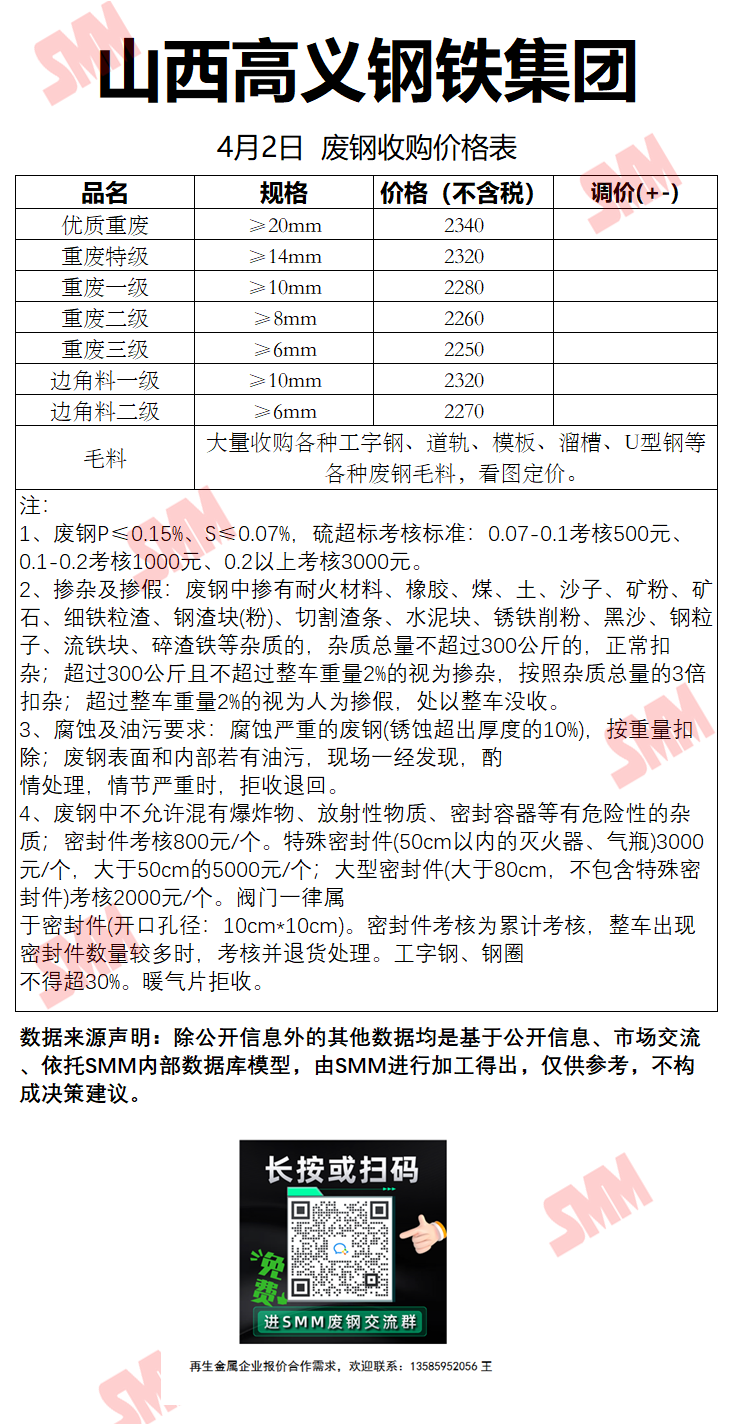 今日山西高义 废钢收购报价已更新,有货的朋友欢迎联系我们!