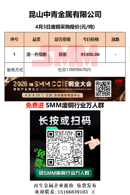 4月3日昆山中青 废铜采购报价