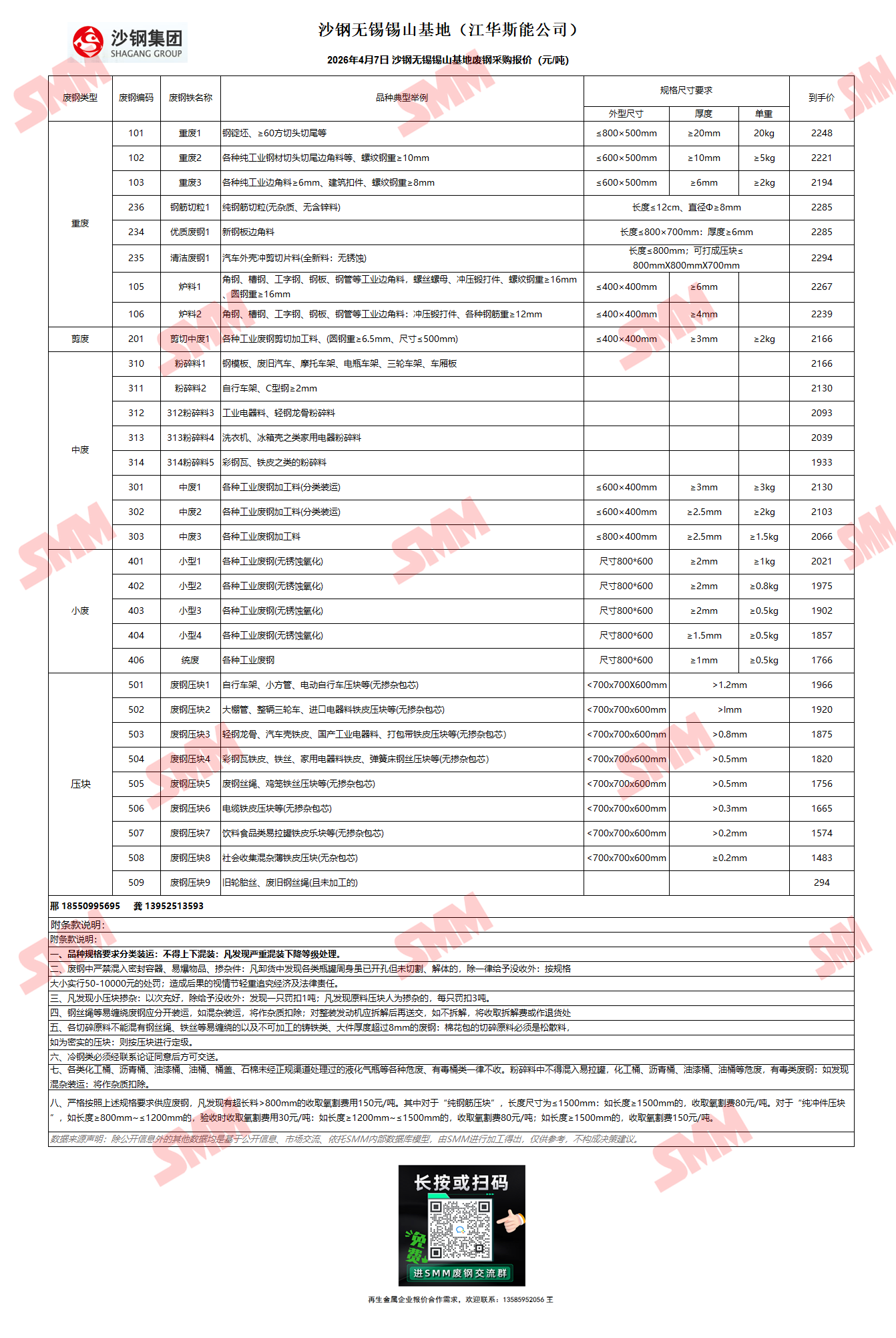 4月7日沙钢锡山基地 (2) 废钢采购报价