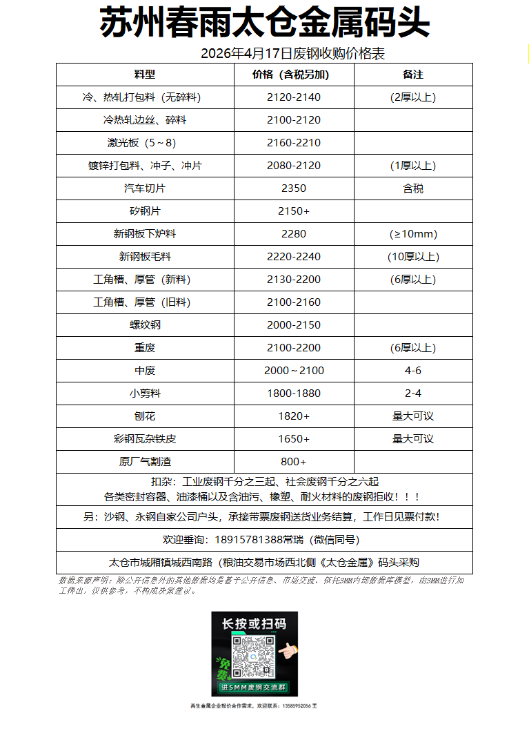 今日苏州春雨 废钢收购报价已更新,有货的朋友欢迎联系我们!